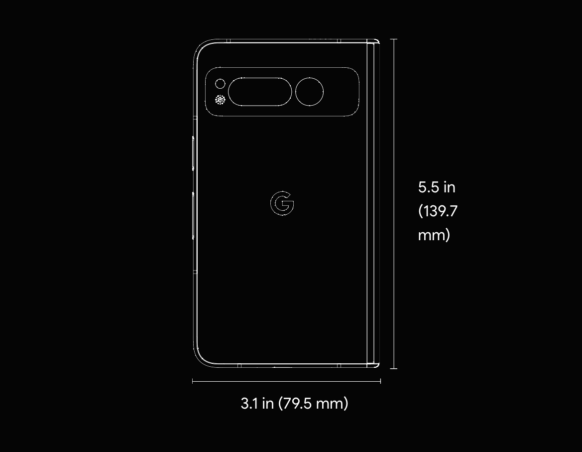 구글 픽셀 폴드는 접었을 때, 5.8인치, 화면을 펼쳤을 때는 7.6인치 몰입형 디스플레이를 제공합니다. 또한, 접이식으로 가장 튼튼한 경첩을 탑재했다고 소개하고 있으며, 접었을 때 크기 또한 현재까지 출시된 폴드형 스마트폰 중 가장 얇다고 소개하고 있습니다.